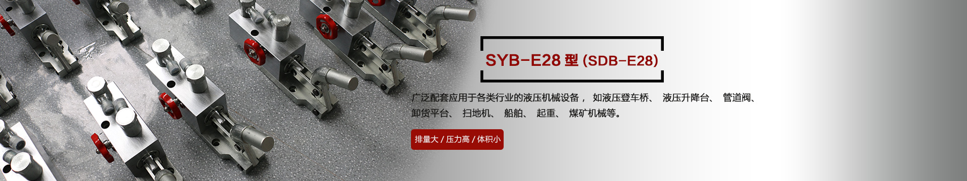本產(chǎn)品SYB-E28型在本公司原有的SDB-E28型基礎(chǔ)上不斷改進(jìn)改良,廣泛應(yīng)用于各種行業(yè)的機械設(shè)備,如液壓登車橋、液壓升降臺、管道閥、卸貨平臺、掃地機、船舶、起重、煤礦機械等液壓機械設(shè)備上,效率高、結(jié)構(gòu)緊湊,深受客戶的歡迎...